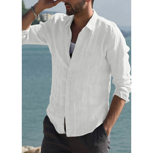 Men's Clothing Luxury Linen Shirts Solid Color Lapel Button-down Long Sleeve Streetwear Vintage Leisure Popular Blouse S-3XL